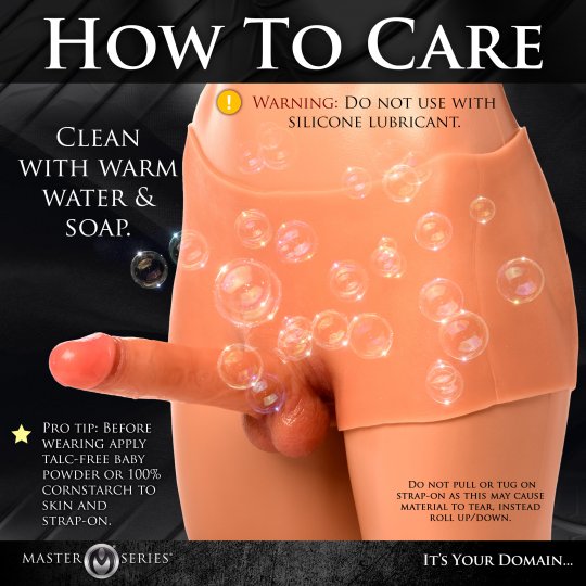 Spice up your night and really enjoy your masculine side with these panties! After taking time to carefully put them on, slide a pair of pants over them to go full masculine or wear a dress or skirt to combine your masculine and feminine sides and have a sexy surprise under the skirt! When you're ready to play, use water-based lube and enjoy pleasing your partner with your new dong! If you want to protect the rod from bodily fluids, wear a condom over it for safety. As you get your shaft deep inside your partner, enjoy the look of surprise and enjoyment on their face as you become the man of their dreams! If you feel open to it, open your backdoor to them and let them play with your booty, as well! Turn around and let them inside of you! It will be a fun night of taking turns and exploring holes!