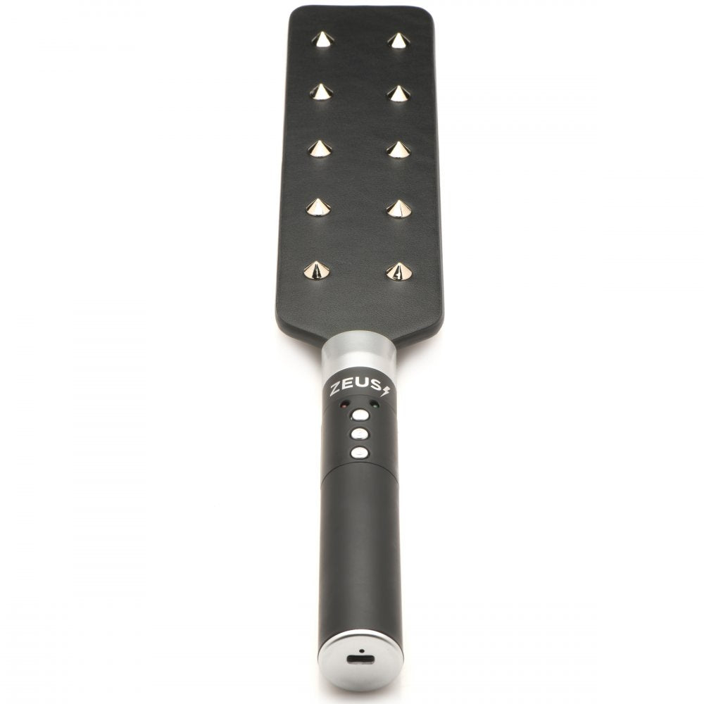 Add some bite to your spanking sessions with this E-stim Spiked Paddle! It has 10 spikes on one side that will bite into your partner's juicy flesh like little teeth. They won't break the skin, but they will leave a memorable sensation. Flip it over to the flat side and rub their behind to cool them down. Then amp up the intensity again by turning on the electrostimulation! Choose between two different intensities and enjoy as they get shocked by the conductive spikes! The paddle is covered in vegan-friendly, vegan leather and the metal is made out of nickel-free, zinc alloy. The e-stim paddle is rechargeable. Simply use the USB cable provided. Keep away from water.