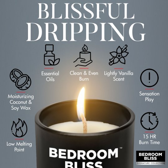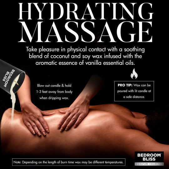 Do something a little different with this Lover's Vanilla Scented Massage Candle by Bedroom Bliss. This unique blend of coconut and soy provides an exceptionally soothing and relaxing blend that moisturizes the skin as you use it. The scent is mild but distinct so you and your lover will always remember those hot nights whenever you smell vanilla. With a low melting point, you can easily get the candle dripping and use it to stimulate and decorate your partner's body with wax! As a bonus, the soy wax has a medium burning point so it takes a little while to heat up but cools quickly on your partner's skin. As the wax touches the skin, so does the coconut that is mixed in with the soy! That means your skin is getting even more love and moisturizing to help protect it from the heat and primed for massage as well. When you want to clean up, use a scraping device (such as a plastic card) to scrape the wax off their body when done, or spank it off their spankable areas to have fun during removal! Make sure to keep the candle away from any flammable materials.